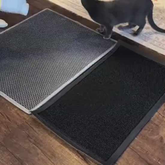 Notre tapis utilise une structure double couche en nid d'abeille. La couche supérieure capture les grains grâce à la gravité, les faisant tomber dans la couche inférieure sécurisée. Résultat : les grains sont piégés dedans, et non éparpillés sur votre sol.